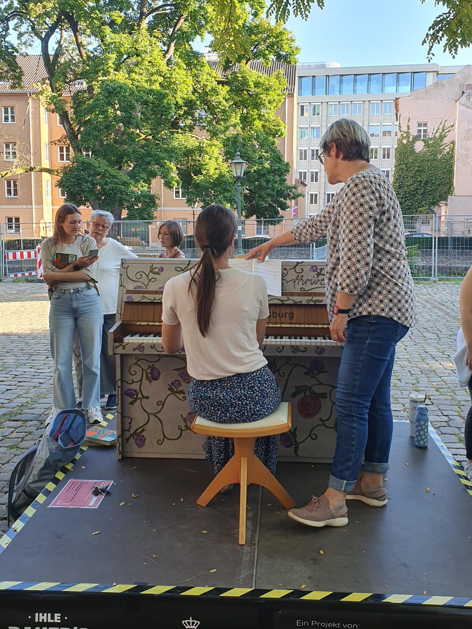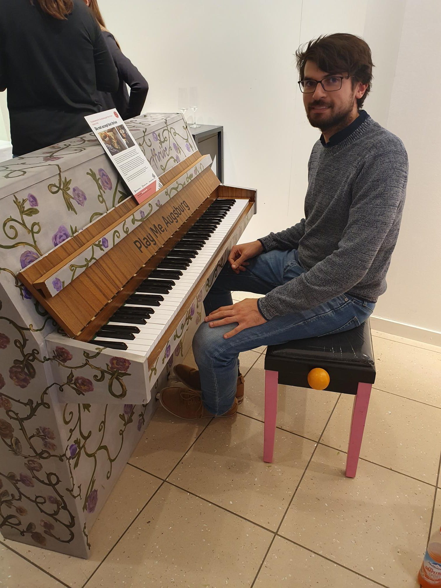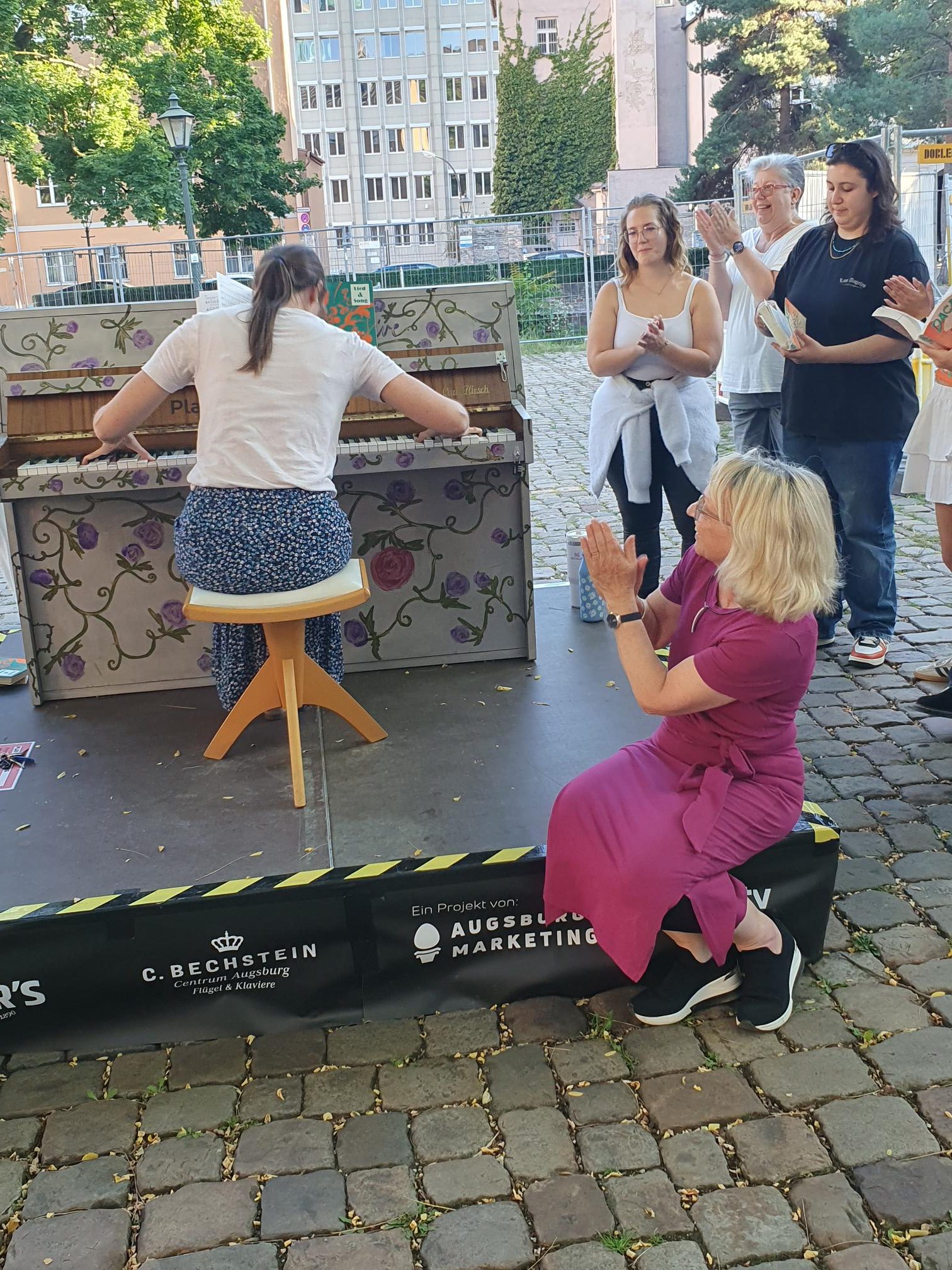 Flanierte man vom 5. bis 28.9.25 durch die Stadt, so hörte man an den schönsten Plätzen Augsburgs den Klang von Pianomusik. Folgte man der Musik, sah man, dass Klavierspieler und -spielerinnen an kunstvoll gestalteten Klavieren für Passanten und Passantinnen spielen.