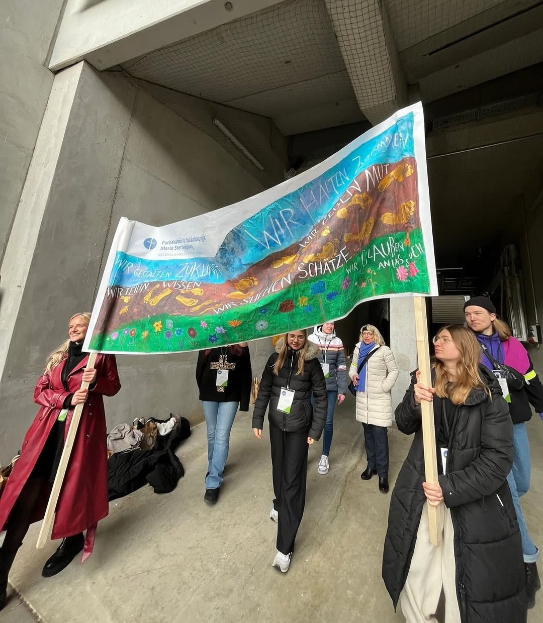Da die Fachakademie Maria Stern seit dem Schuljahr 2023/24 ERASMUS plus anbietet, von dem rege Gebrauch gemacht wurde, konnte den Studierenden ein „Europapass“ übergeben werden. Dafür war eigens Frau Kugler vom Augsburger Europabüro gekommen.