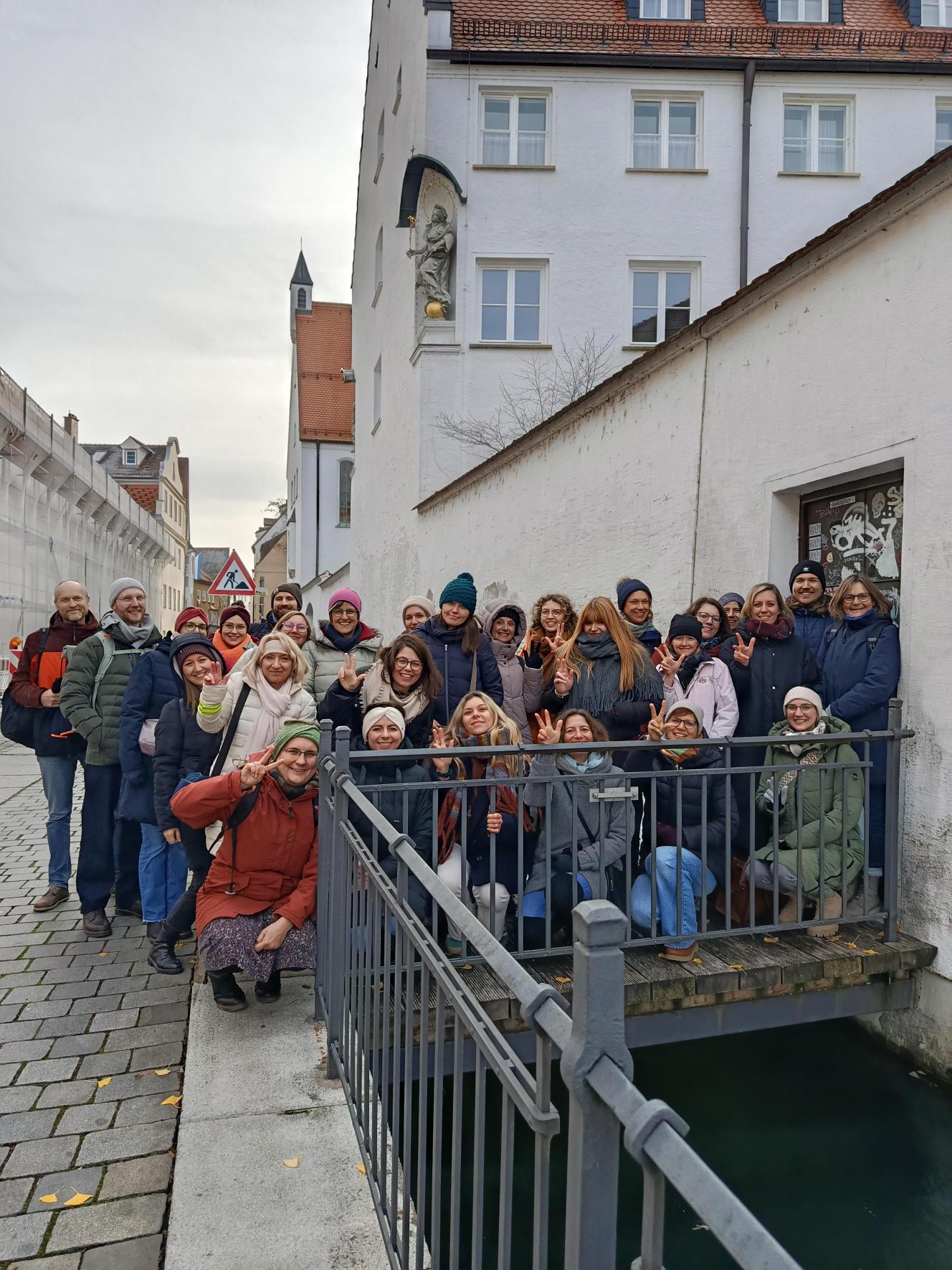 Im Annahof ging es los mit dem etwas anderen Stadtspaziergang durch die Friedensstadt Augsburg zu unterschiedlichen Friedensengeln und unentdeckten, beeindruckenden Friedenszeichen. Nicht nur historisch orientiert, sondern vor allem nachdenklich den Frieden suchend. Step by step: still und humorig, betend und anstachelnd.